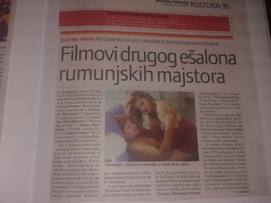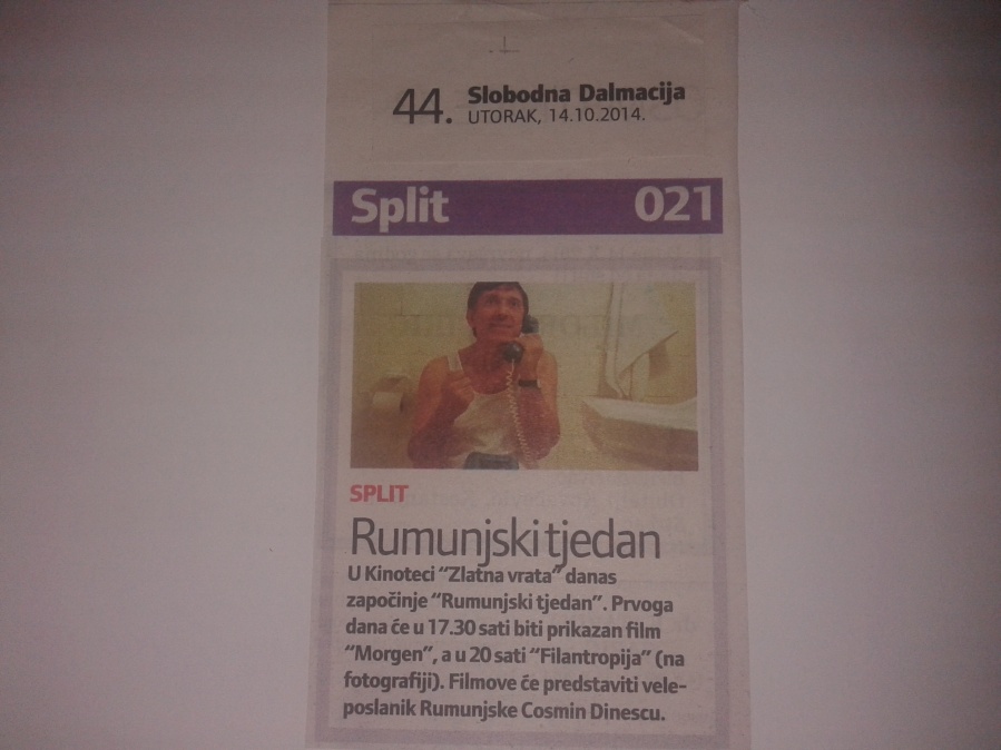 Otvaranje ciklusa filmova "Rumunjski tjedan". Filmove predstavlja veleposlanik Rumunjske Cosmin Dinescu.