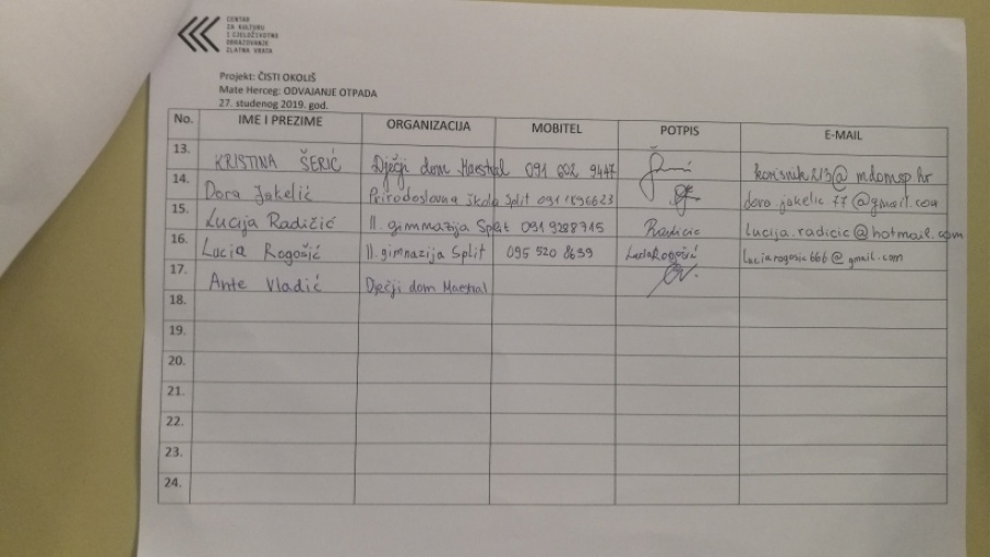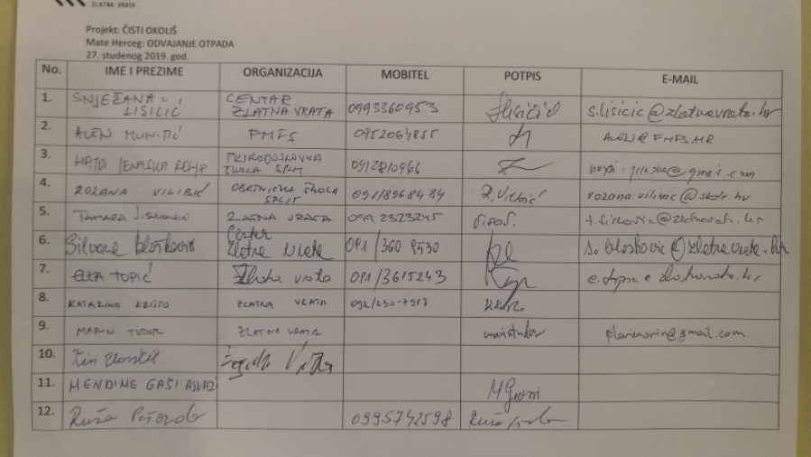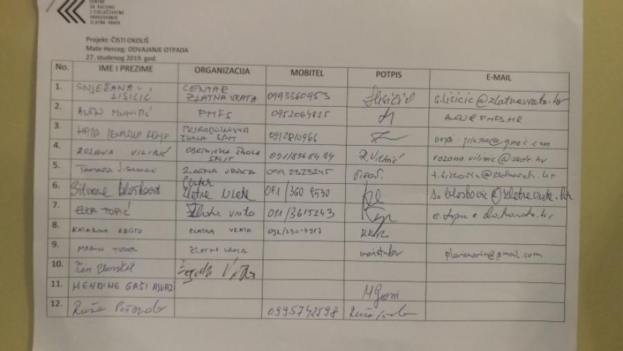 U organizaciji Centra za kulturu i cjeloživotno obrazovanje Zlatna vrata i Udruge za edukaciju građana (UZEG) Split dana 27.11.2019. u 12:00 sati u prostorijama Centra održana je prva edukacija o odvajanju otpada u sklopu projekta "Čisti okoliš", sufinanciran od Grada Splita.