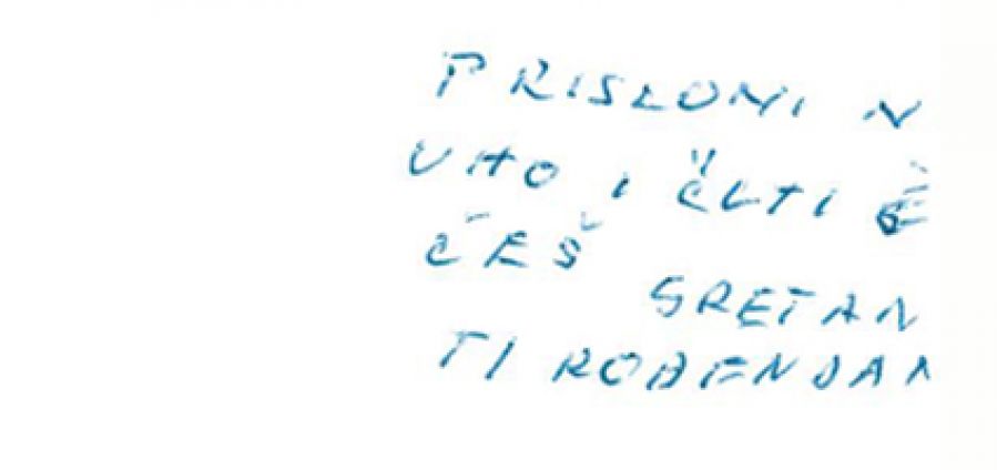 U poznoj životnoj dobi, potpuno izgubljenog osjeta vida, djed unuci na poleđini vlastite fotografije za dokumente piše Prisloni na uho i čut ćeš sretan ti rođendan. Pritom koristi isključivo mišićnu memoriju, uspijevajući impresivno čitko ispisati cijelu misao sitnim slovima. Umjetnica odlučuje kreirati harmoniju s njegovim zvukom dodajući svoj, nastao ispisivanjem istih riječi, no ovoga puta izrazito uvećanih. Dvije generacije udaljeni, oboje ozvučavaju vizualno, a šum linija nastalih velikim, nesuzdržanim potezima spaja se s onima vidljivima, izloženima na stolu, rubno, vječno.